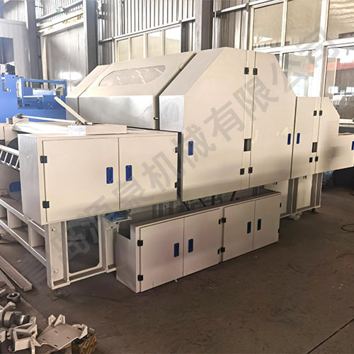 本機主要開松、梳理山羊絨、綿羊絨、牦牛絨、駝絨等動物纖維。經(jīng)過逐 級開松、梳理、去粗、去雜,使原料達到單纖維狀態(tài)供后道梳理工序使用 本機具有開松效果好、下機產(chǎn)量高、纖維損傷率低的優(yōu)點,是羊絨分梳聯(lián) 合機中的優(yōu)選設(shè)備之一。